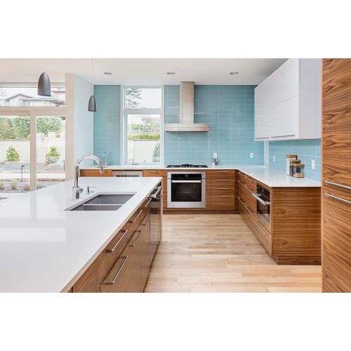 Для открывания фасадов используются мебельные ручки. Для изготовления корпуса используется ЛДСП брендов Увадрев, Egger, Kronospan для изготовления фасадов МДФ толщина 16мм, 18мм., Alvic, Arpa HPL, TSS CLEAF (основа ЛДСП), фурнитура брендов BLUM (Австрия), Hettich (Германия), BOYARD (Китай), PULSE (Россия) Пластиковые столешницы российского производства ПластДекор, Союз, и Egger. По желанию заказчика гарнитур может быть укомплектован столешницей из искусственного камня, или кварцевого агломерата.